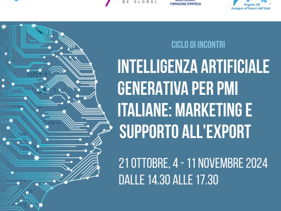 Ciclo di incontri “Intelligenza artificiale generativa per PMI italiane: marketing e supporto all’export” – 21 ottobre, 4 e 11 novembre 2024