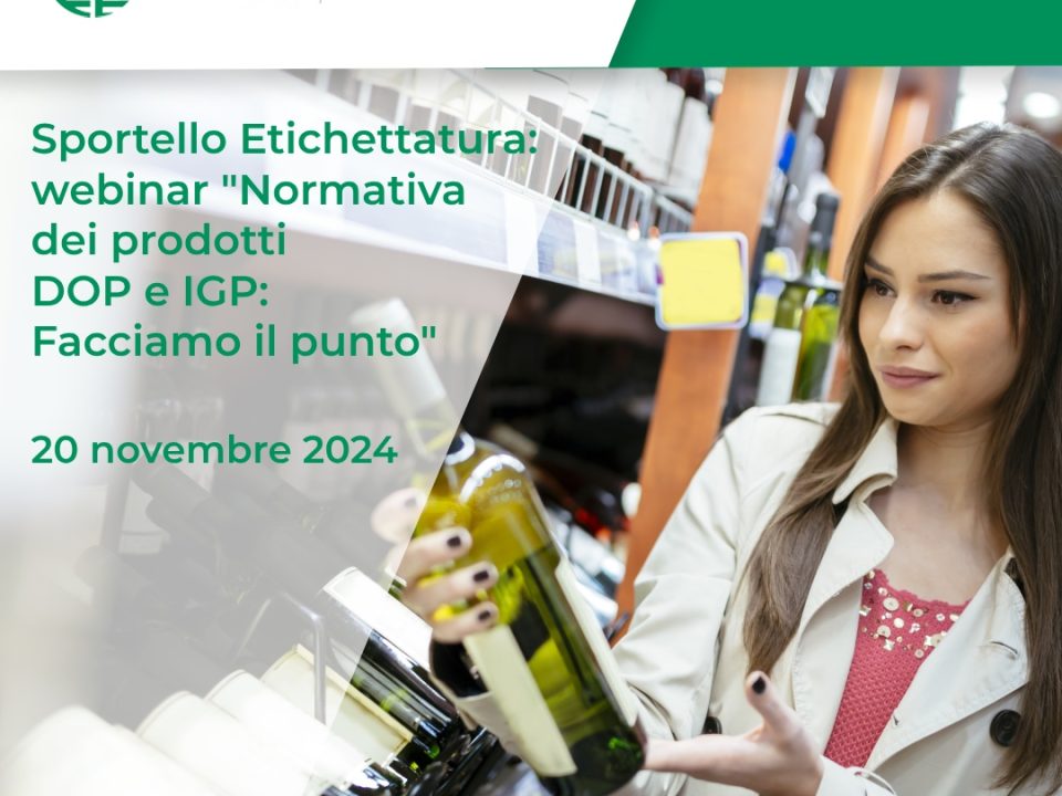 Sportello Etichettatura: webinar “Normativa dei prodotti DOP e IGP: Facciamo il punto” – 20 novembre 2024
