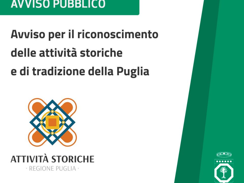 Avviso per manifestazione di interesse per il riconoscimento delle attività storiche e di tradizione della Puglia