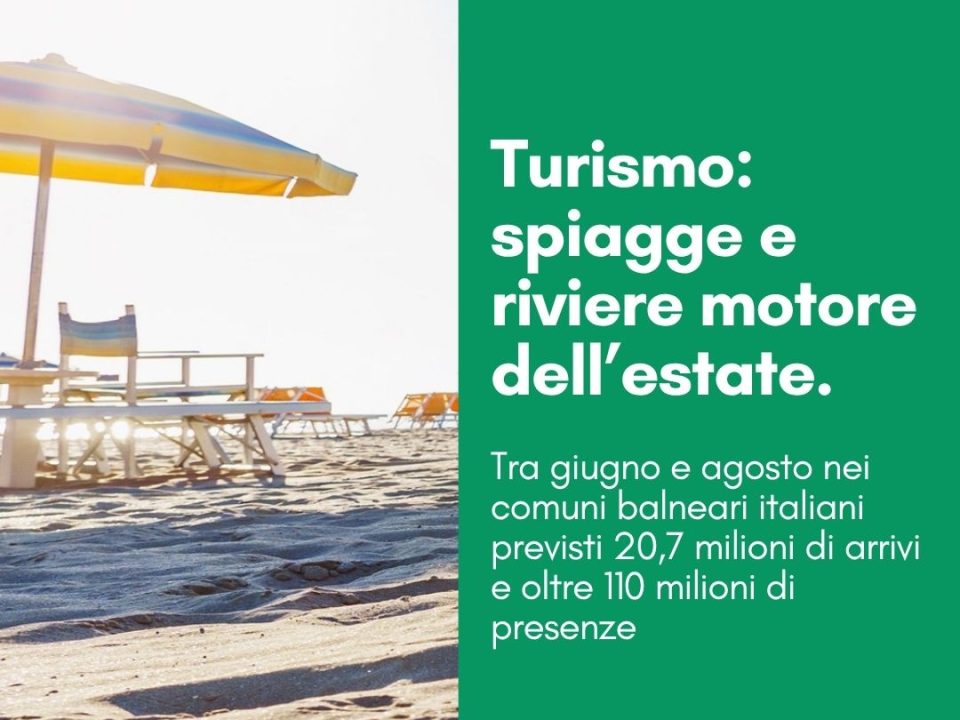 Turismo: spiagge e riviere motore dell’estate. Tra giugno e agosto nei comuni balneari italiani previsti 20,7 milioni di arrivi e oltre 110 milioni di presenze