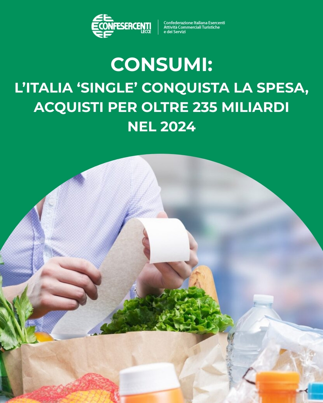 La spesa è sempre più single. Nel 2024 gli acquisti delle famiglie composte da una sola persona hanno superato i 235 miliardi di euro, pari al 26,2% della spesa complessiva degli italiani. Si tratta di 69 miliardi in più rispetto al 2012, quando il totale si fermava a 166 miliardi. Un boom trainato dai cambiamenti demografici e sociali, che sta modificando il panorama delle abitudini di acquisto e l’offerta del retail.