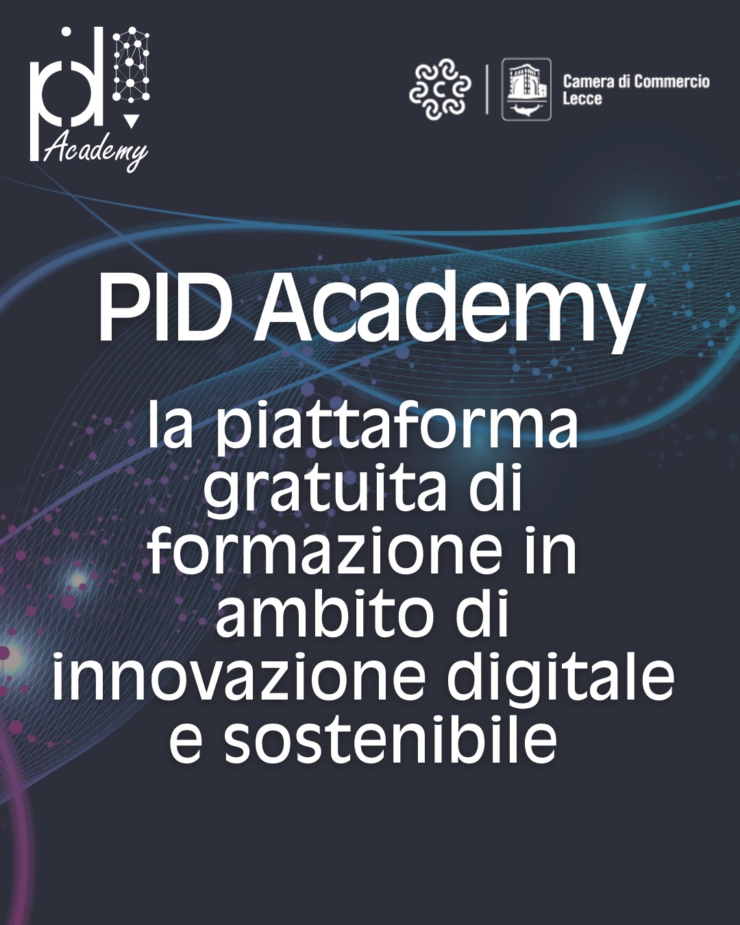 La Camera di Commercio di Lecce insieme al PID (Punto Impresa Digitale) promuove la piattaforma gratuita di formazione PID Academy accessibile mediante registrazione dal seguente link https://pidacademy.camcom.it/